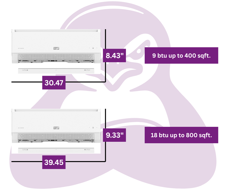 COVERAGE & CAPACITY GUIDE Optimal conditions: 8-foot ceilings and good insulation 7K: 350 sq ft | 9K: 400 sq ft | 12K: 550 sq ft | 18K: 800 sq ft | 24K: 1,050 sq ft
