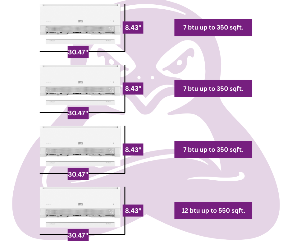 GWIN 33,000 BTU 22 SEER2 230V Four-Zone Ductless Mini-Split Complete System (36k condenser,7K + 7K + 7K + 12K Wall Mount) with 15 foot line set and communication wire